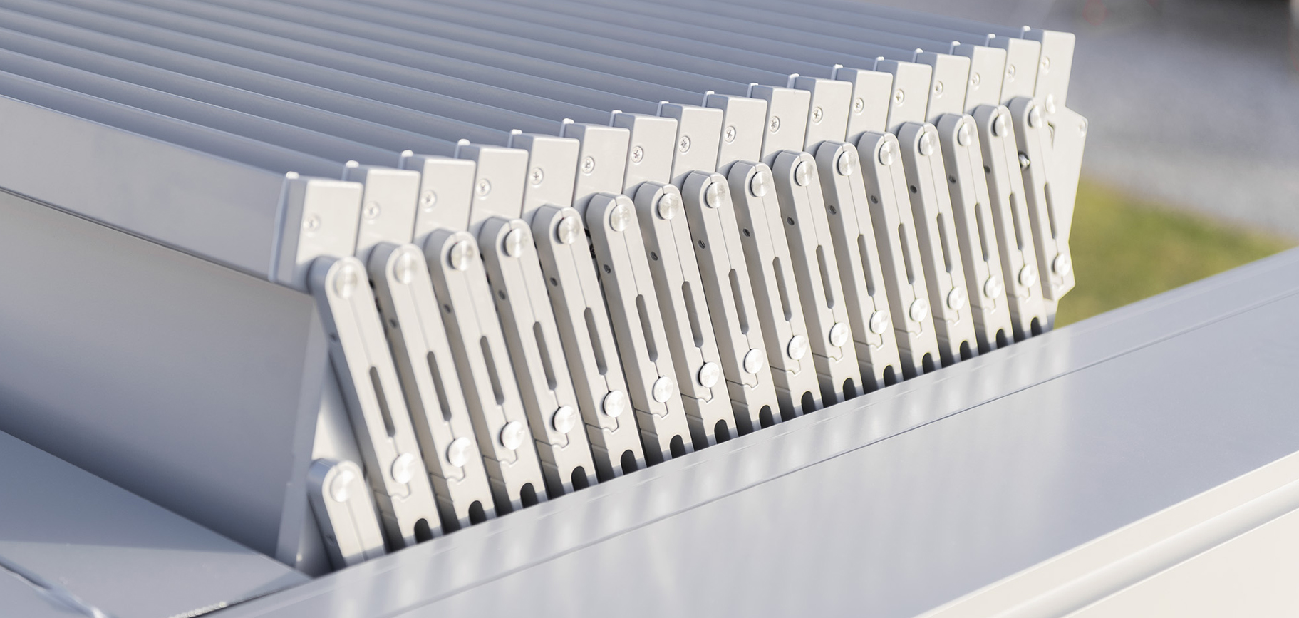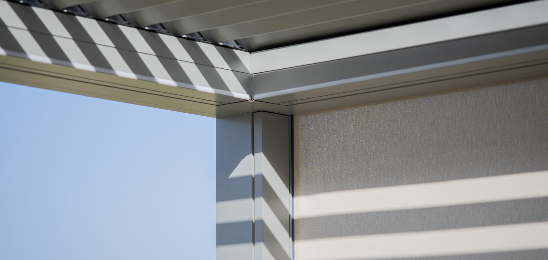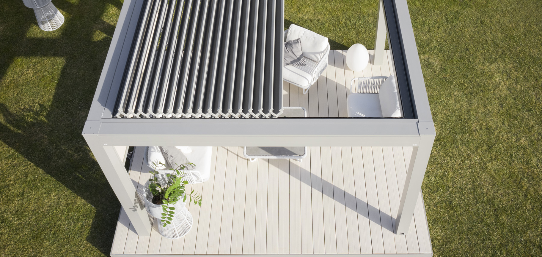 Adatta per essere installata sia in contesti residenziali che commerciali, è stata progettata per avere alte prestazioni di schermatura solare, tenuta al vento e riparo in caso di pioggia grazie ad un sistema di deflusso dell’acqua integrato.