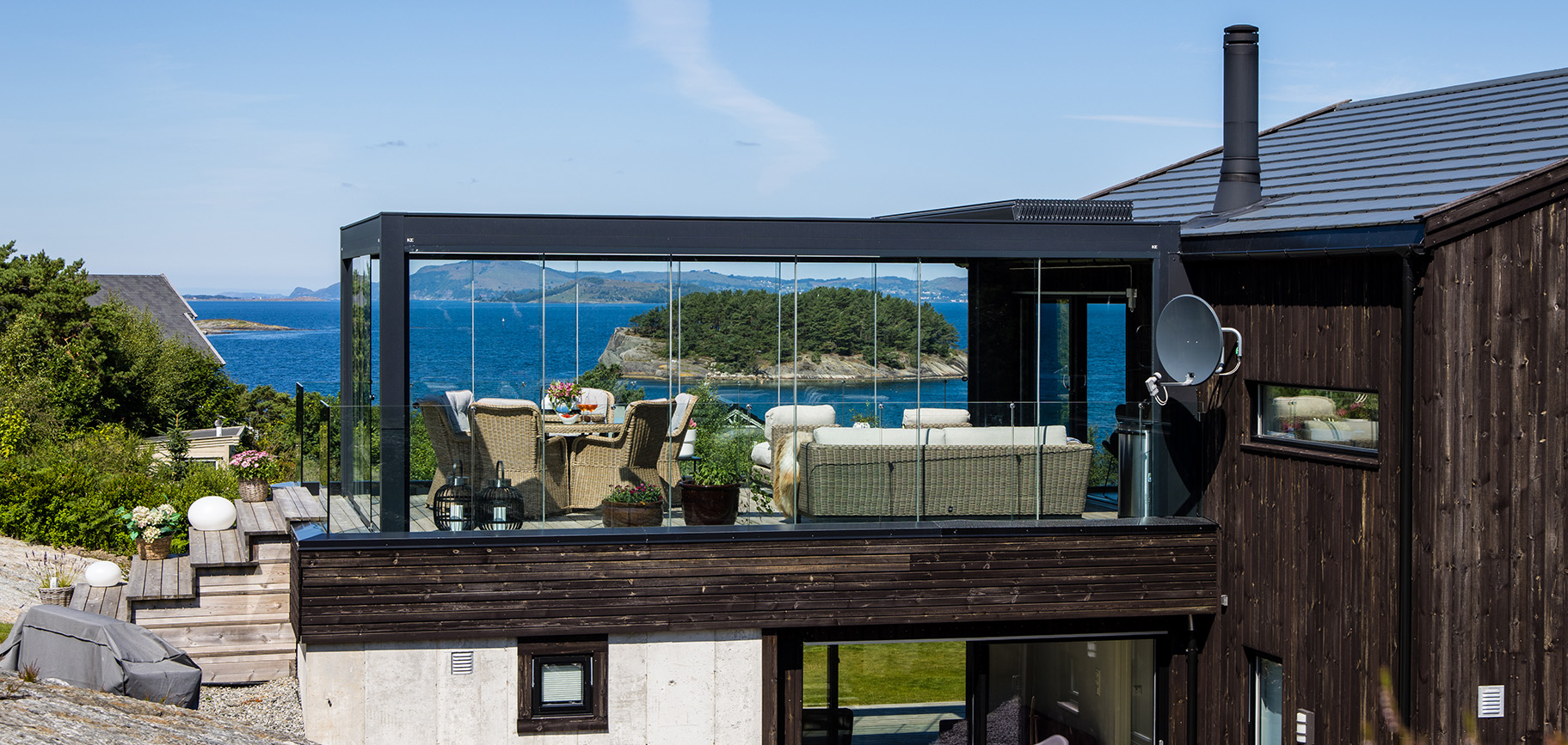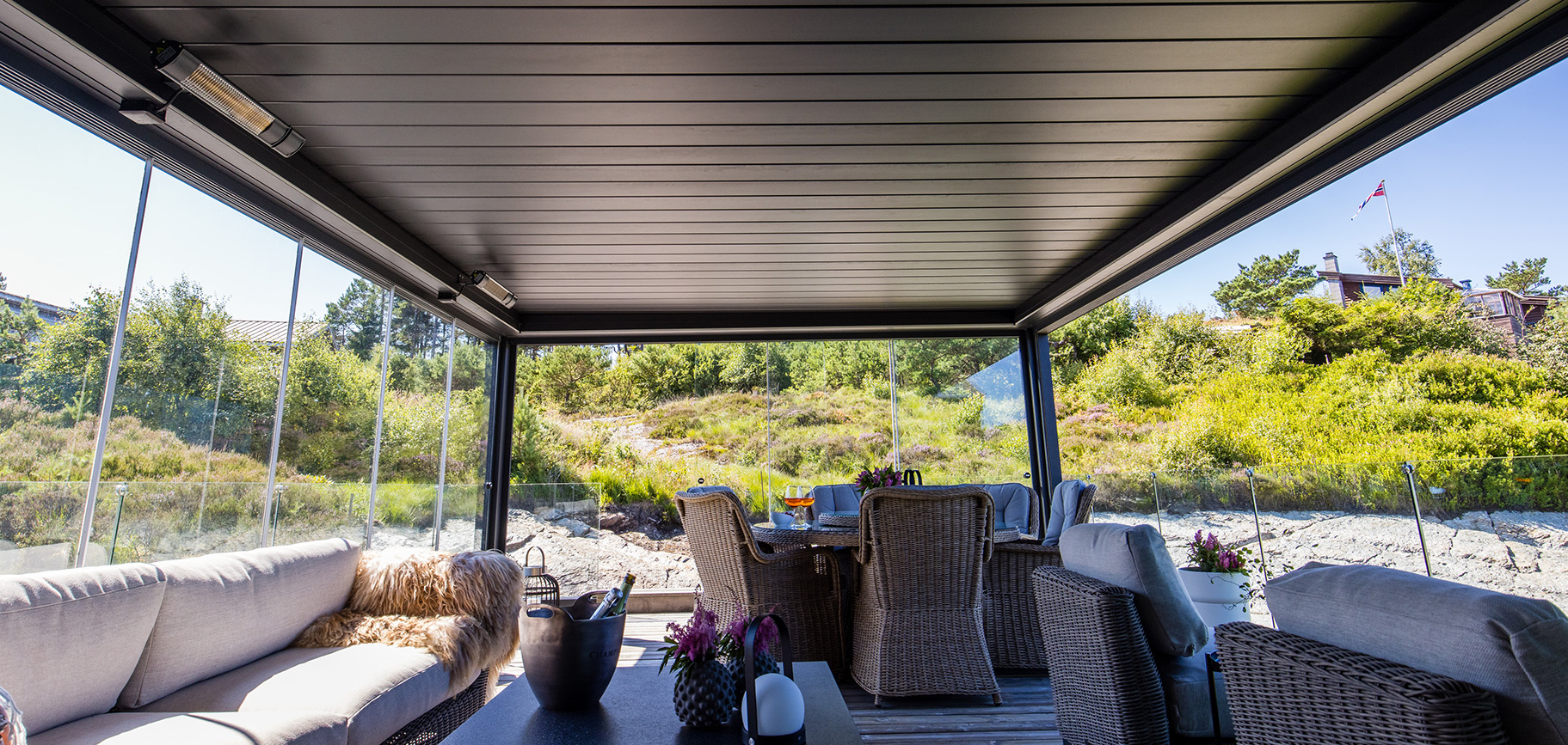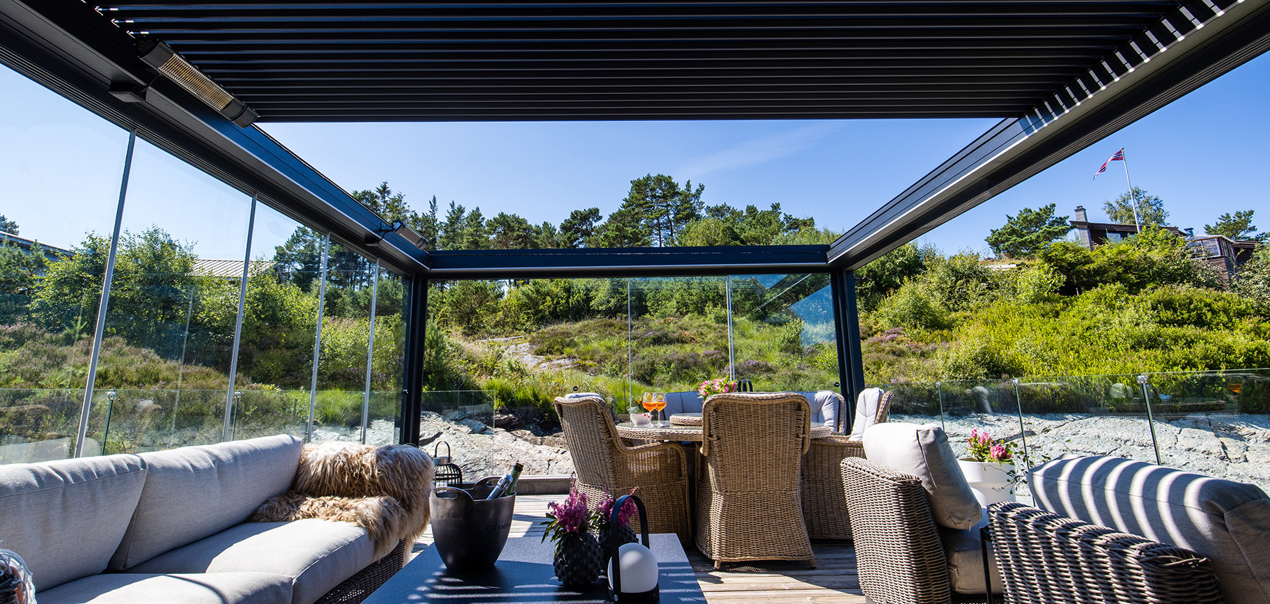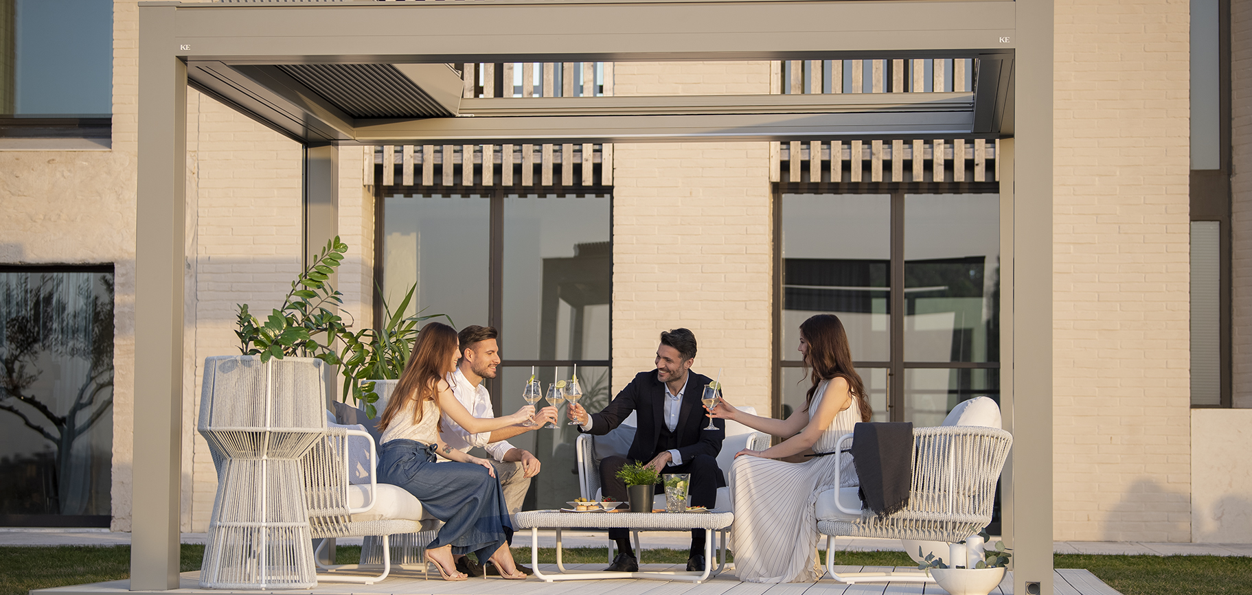 Adatta per essere installata sia in contesti residenziali che commerciali, è stata progettata per avere alte prestazioni di schermatura solare, tenuta al vento e riparo in caso di pioggia grazie ad un sistema di deflusso dell’acqua integrato.
