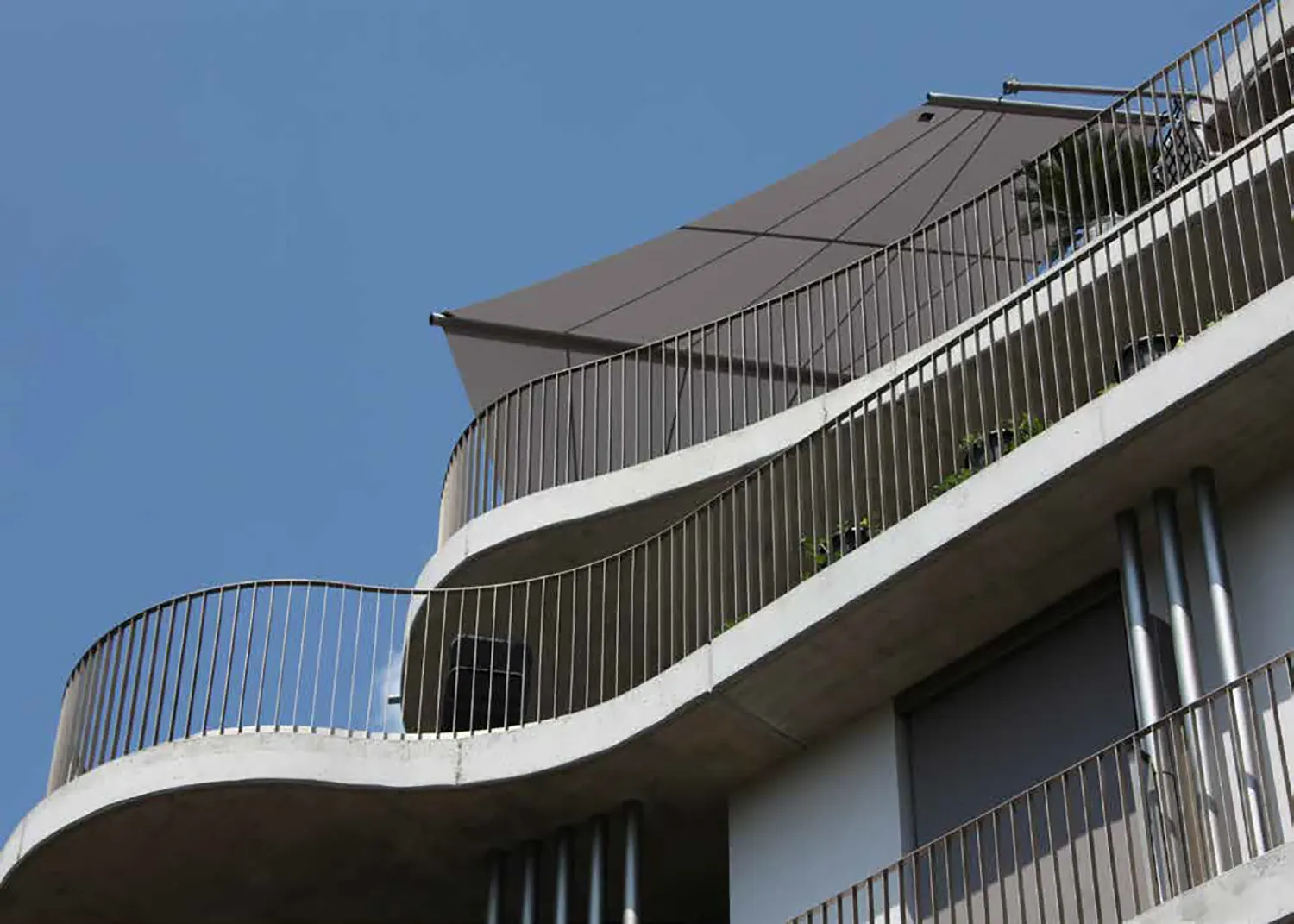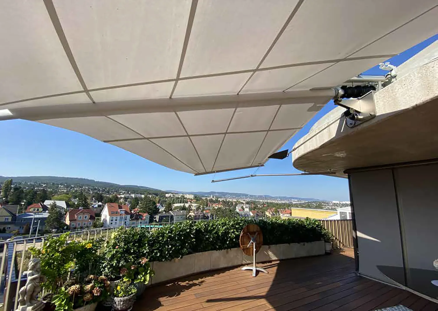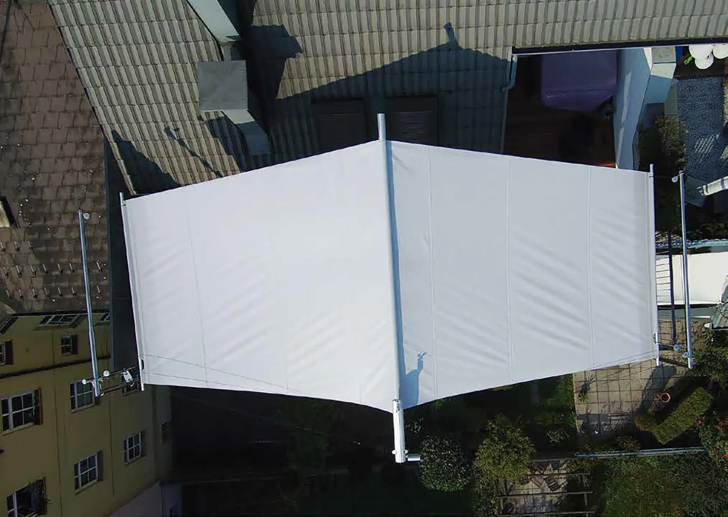 La tenda da sole bifacciale SunSquare® con taglio vela rettangolare e albero a sbalzo – di conseguenza, solo cinque punti di fissaggio (wall o supporti a pavimento) sono necessari. Che si tratti di un giardino, un patio o una terrazza, la tenda da sole a vela può trasformare l'ambiente esterno in uno spazio accogliente e elegante. Per aree veliche fino ad un massimo di 40 m² di superficie del panno.