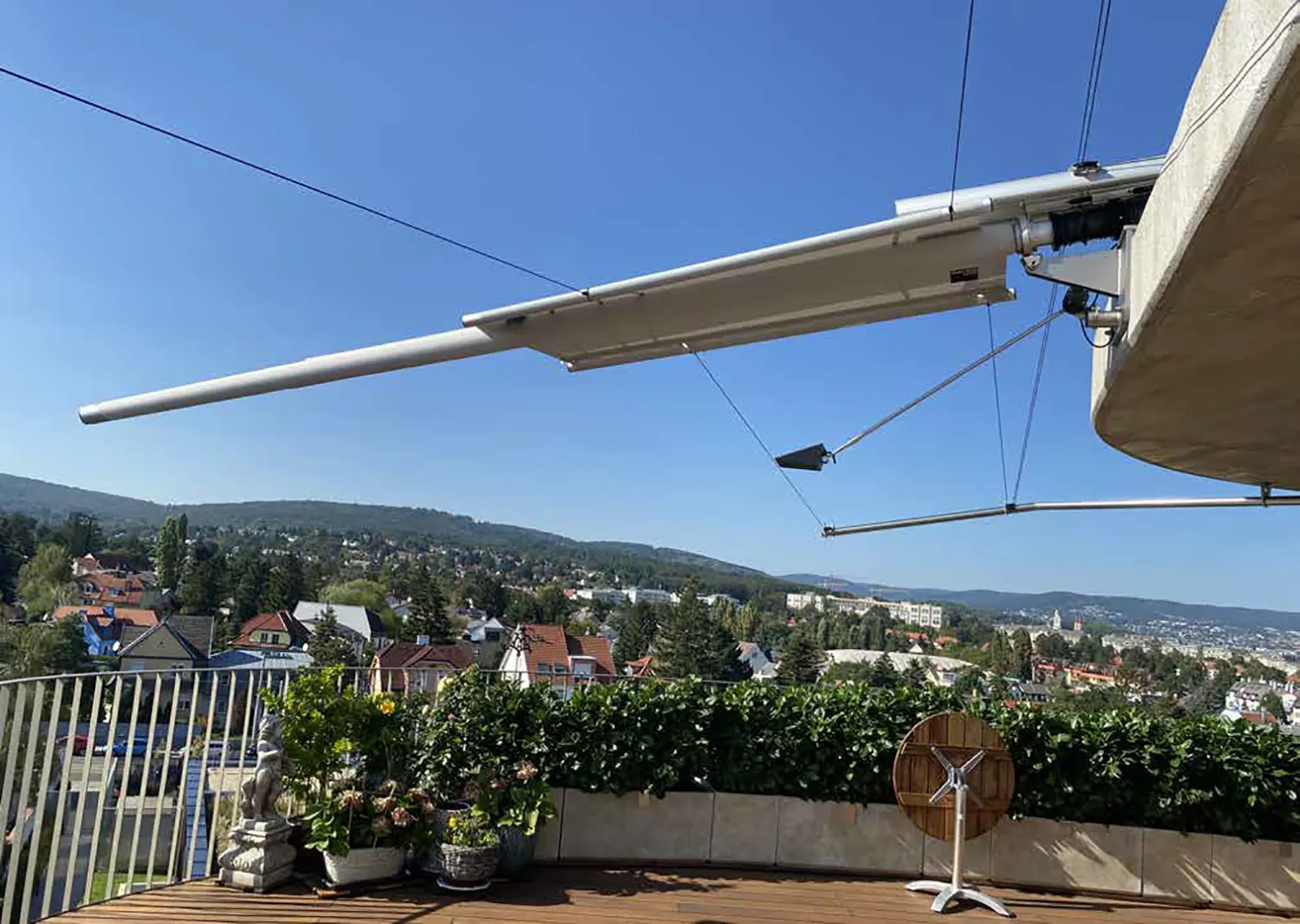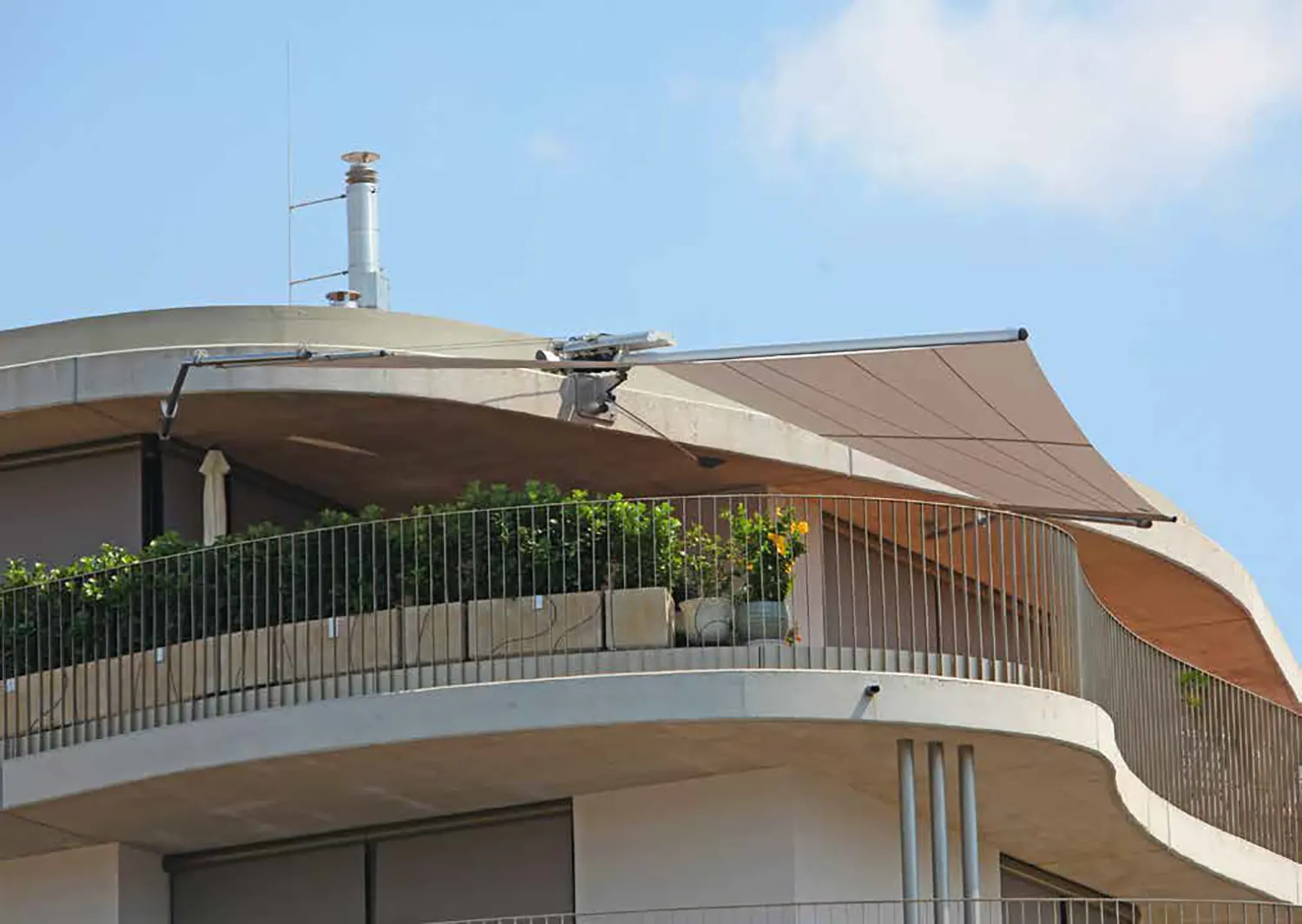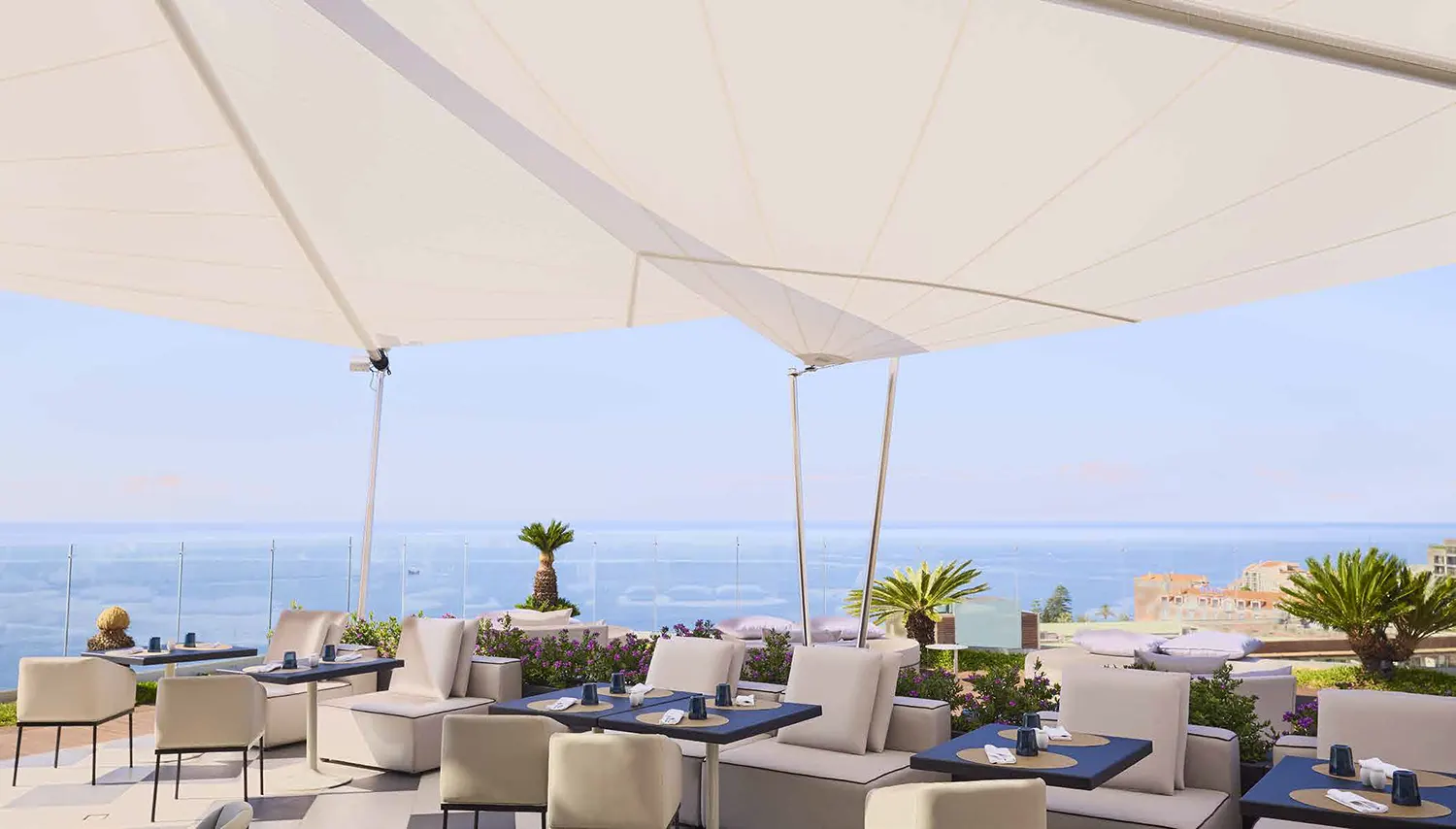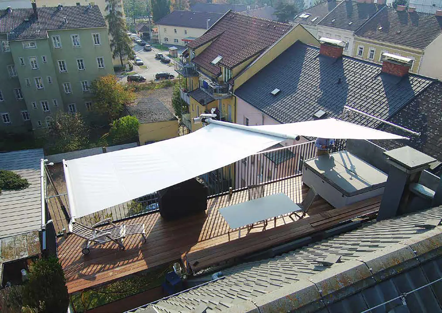 La tenda da sole bifacciale SunSquare® con taglio vela rettangolare e albero a sbalzo – di conseguenza, solo cinque punti di fissaggio (wall o supporti a pavimento) sono necessari. Che si tratti di un giardino, un patio o una terrazza, la tenda da sole a vela può trasformare l'ambiente esterno in uno spazio accogliente e elegante. Per aree veliche fino ad un massimo di 40 m² di superficie del panno.